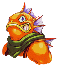 Gobi Gobi appartient à une tribu de marchands qui se vante de devenir contrôler un jour le commerce mondial. Leur zone de commerce est n’importe quel endroit qui touche à la mer. Ils sont célèbres pour leur avidité, et Gobi l’est spécialement. Ses propres compagnons l’ont rejeté et il a été exclu par le chef de la tribu. A cause de cela, sa capacité à se transformer en énorme poisson est bloquée et sa vie de commerçant est très limitée. Cependant, Gobi n’a toujours pas retenu la leçon. |